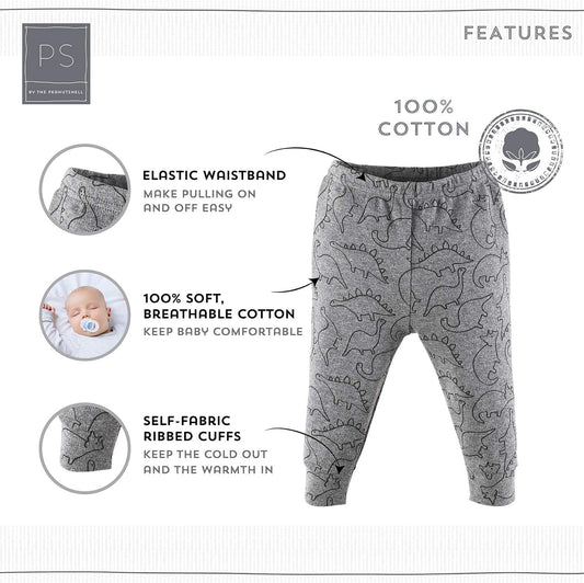 5 Pack Baby Pants 100% Cotton - Dinosaur Print Toddler Pants for Boys Girls 0-24 Months
