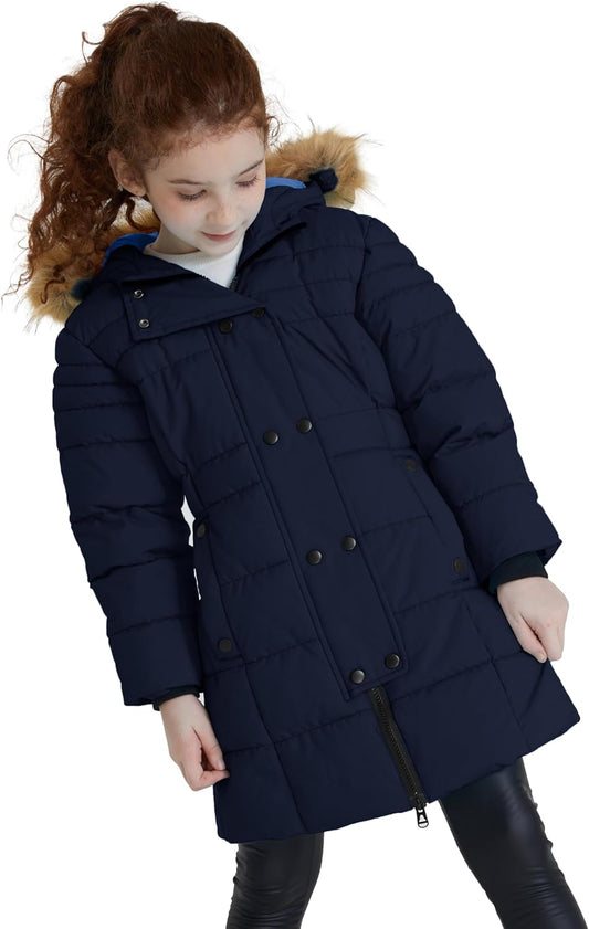 Girls Winter Puffer Jacket - Waterproof Warm Long Parka Coat